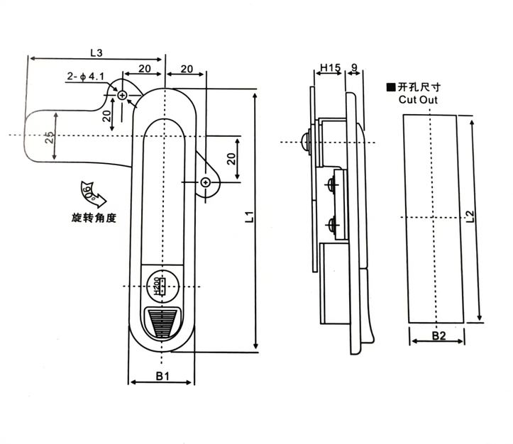 கட்டமைப்பு விளக்கம்: திறக்க அல்லது பூட்ட 90 டிகிரி சுழற்று.